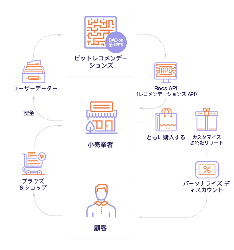今回BitRewardsのロイヤリティプログラムに搭載されているAIは、顧客の購買履歴や購買行動に基づき、顧客にとって最適な商品をレコメンドすることにより、最良のコンバージョンとロイヤリティを実現することができます。