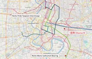 ●『(仮称)Ekamai(エカマイ) プロジェクト』は、約870戸の分譲マンションで、最寄り駅のエカマイ駅からバンコクの中心地であるアソーク駅まで直通で3駅(約5分)と交通アクセスに優れています。また、本物件が面するエカマイ通りや、近くのトンロー通りには商業施設や病院などが揃い利便性の高いエリアとなっています。