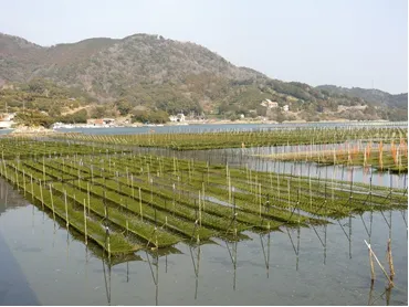 毎年1月から4月頃までは、県内各地の沿岸域で、養殖網に密に伸びた「青さのり」の鮮やかな緑色の風景が広がり、風光明媚な漁村の景観を引き立たせている。