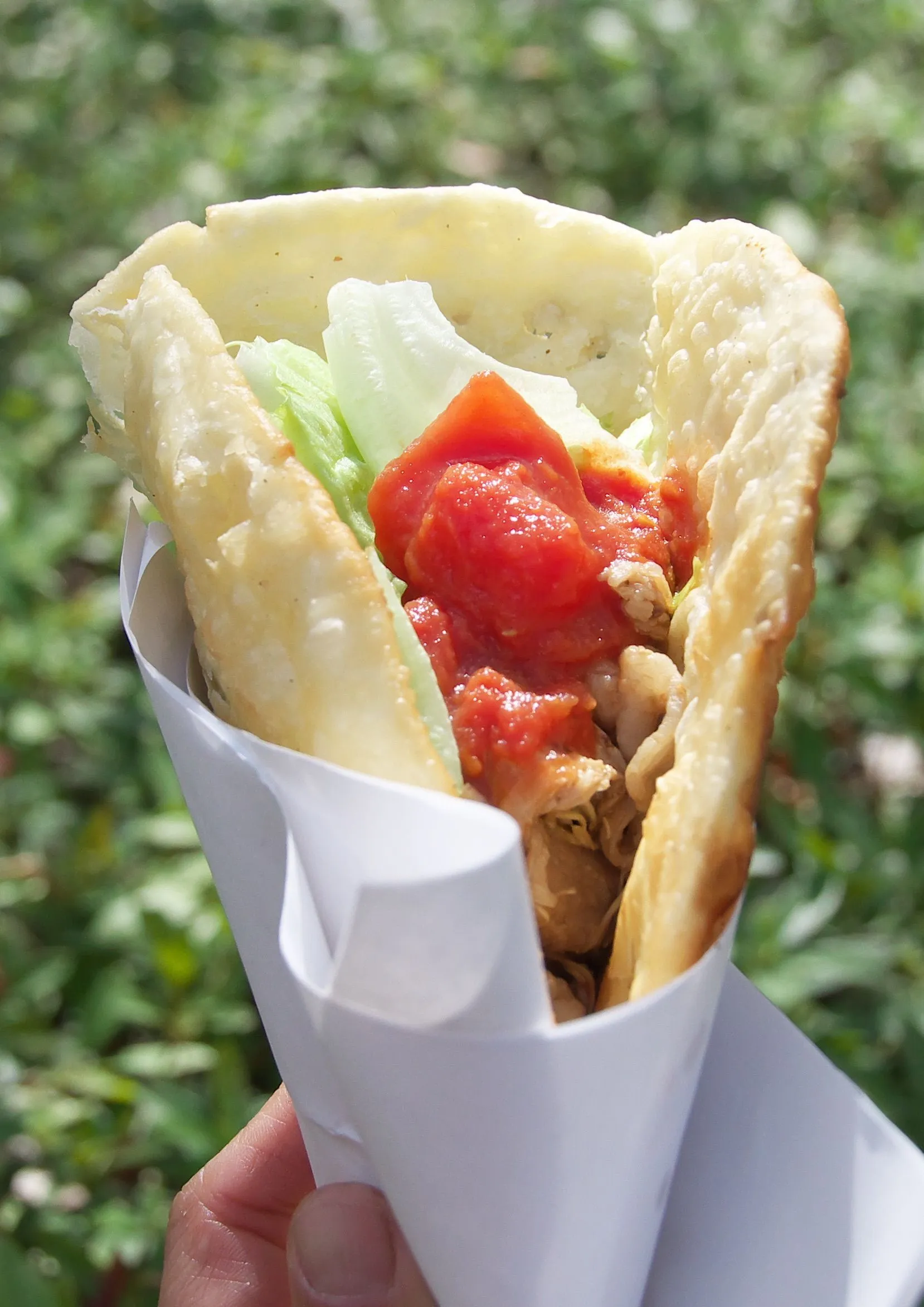 モンゴルパンは、アジア遊牧民御用達の焼きたてパンのホットサンド。鉄板で焼いた熱々のパンに野菜を主とした具を挟みます。行列の出来る人気のパンです。