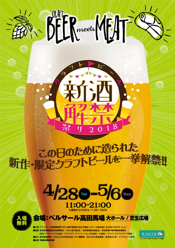 クラフトビール新酒解禁祭り2018実行委員会(住友不動産ベルサール株式会社、WARM HEART LLC.)は「クラフトビールをもっと身近に」をコンセプトにしたビールフェス「クラフトビール新酒解禁祭り2018」を2018年4月28日(土)~5月6日(日)の連続9日間、ベルサール高田馬場(東京都新宿区)で開催いたします。