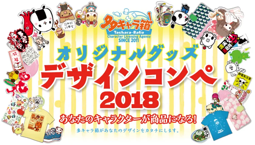 「多キャラ箱オリジナルグッズ デザインコンペ2018」は、多キャラ箱に参加するクリエイターたちとのコラボレーションによって誕生した“多キャラ箱オリジナルグッズ”のアイテムを拡充するために開催されるデザインコンペです。