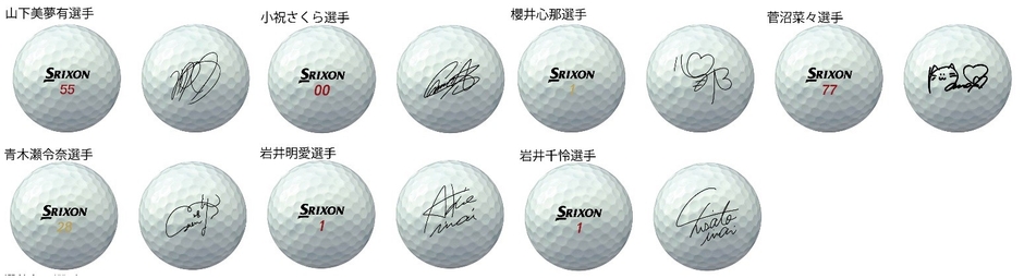 「スリクソン Z-STARシリーズ」は、2023年JLPGAツアーにおいて38戦中19勝と、同ツアー勝率No.1となりました。今回発売するアソートBOXには、昨年同ツアーで優勝した当社ゴルフ用品の使用契約選手の7名※の選手が使用するボールに選手のサインと実際に使用しているボールナンバーをプリントした7球がセットされています。