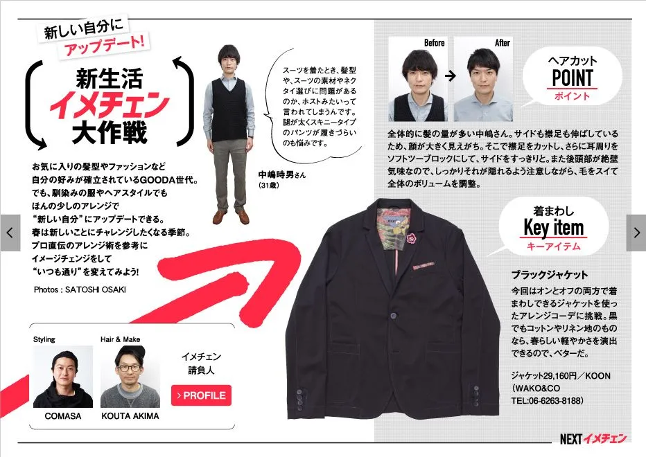表紙・巻頭グラビアには、俳優の井浦新さんが登場。春に向けて印象を変化できる、ひとクセありのアイテムを使ったコーディネートを着こなします。また、インタビューではファッションディレクターとしての顔をもつ、井浦さんのファッション感に迫ります。