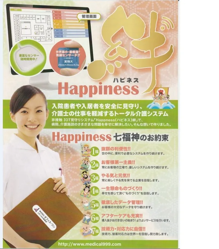 株式会社オフィスワン(本社:大阪市北区、代表取締役:吉田 和久、以下 当社)は、病院・介護施設向けに「バイタルチェック」「徘徊防止」「排泄・排尿管理」など現場で必要とされるセンサーを一括で管理できるIoT見守りシステム「Happiness絆」を、2018年4月1日(日)から販売開始いたします。