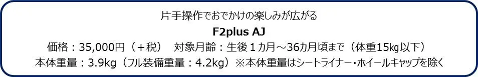 コンビ株式会社(本社:東京都台東区 代表取締役社長:五嶋啓伸、以下コンビ)は、片手で自在に操作ができるベビーカー「F2plus AJ」を、4月上旬より全国のベビー用品専門店、玩具専門店、百貨店などで販売いたします。