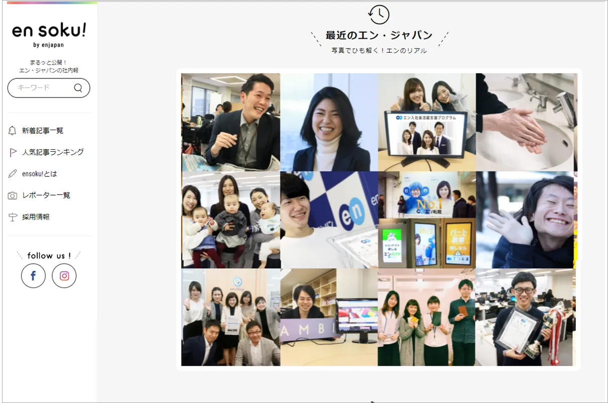 「ワクワクする情報を社内に埋もれさせておくのはもったいない」。こんな社員の声から生まれた社内報、エンソク。社員のお友達、ご家族、昔の仲間にも「エン・ジャパンの今」を知ってもらえたら…そんな想いで、会社の日常を毎日更新しています。ぜひ、一度ご覧ください。