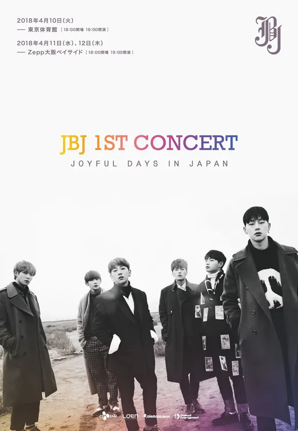 JBJ運営事務局(主催:ダイヤモンドエンタテインメント株式会社)は、2017年、韓国で大ヒットしたオーディジョン番組「PRODUCE101」に出演し、ファンの熱い要望により異例のデビューを果たした大人気グループ“JBJ”のワールドツアーファイナルコンサート『JBJ 1ST CONCERT[JOYFUL DAYS]IN JAPAN』を4月10日(火)東京体育館、4月11日(水)・4月12日(木)大阪Zepp Baysideにて開催いたします。