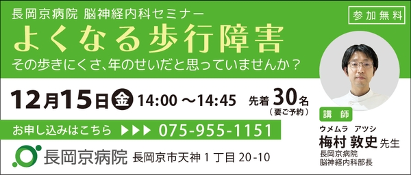 長岡京病院、12月15日(金)にセミナー第4弾を開催!脳神経内科セミナー「よくなる歩行障害」~その歩きにくさ、年のせいだと思っていませんか?~