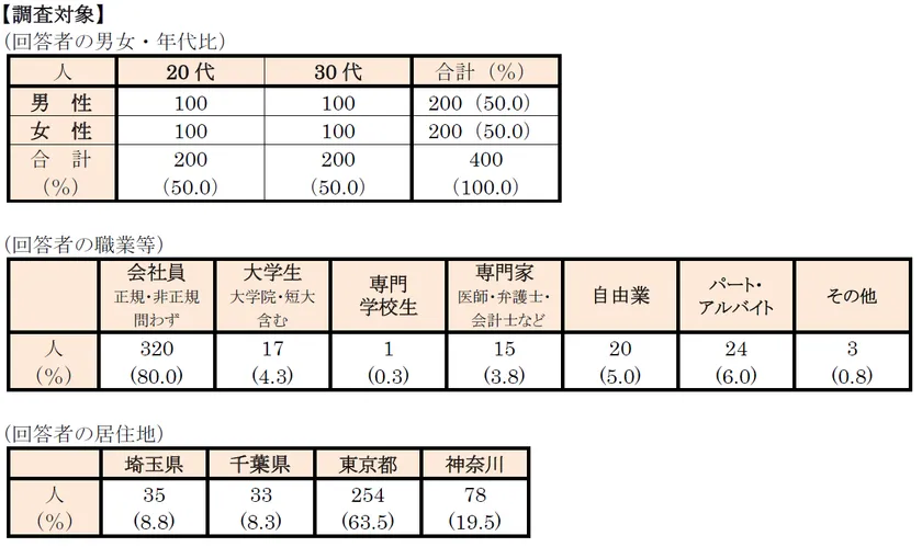 ◆調査対象:首都圏※の独身ワンルーム単身入居者400人