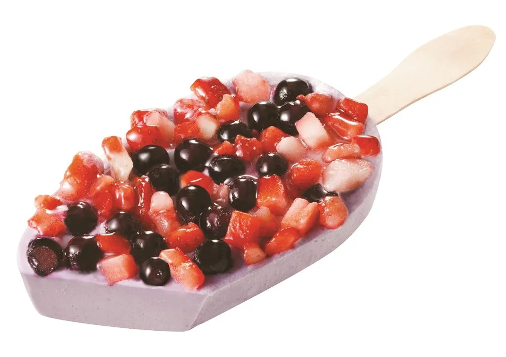 昨今、クリームチーズを使用したアイスが人気を集めています。そこでミニストップは、クリームチーズと相性の良いフルーツのブルーベリーとストロベリーを一面にトッピングし、華やかにコーティングしたアイスクリームを発売します。