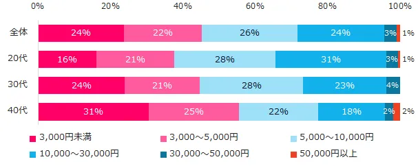 「自分磨き」に使える「時間」は「月4~12時間(週1~3時間)」(38%)、使える金額は「5,000~10,000円」(26%)が最多でした。金額は、年代が上がるごとに減少します。