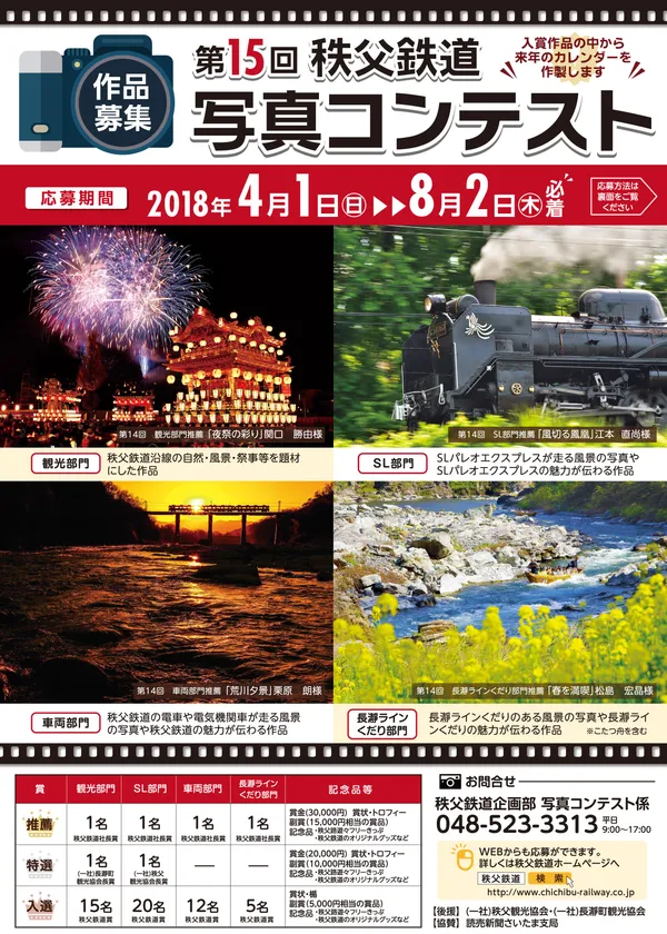 今年は4/1(日)~8/2(木)が応募期間 第15回秩父鉄道写真コンテスト開催 入賞作品の中から2019年のカレンダーを作製します!