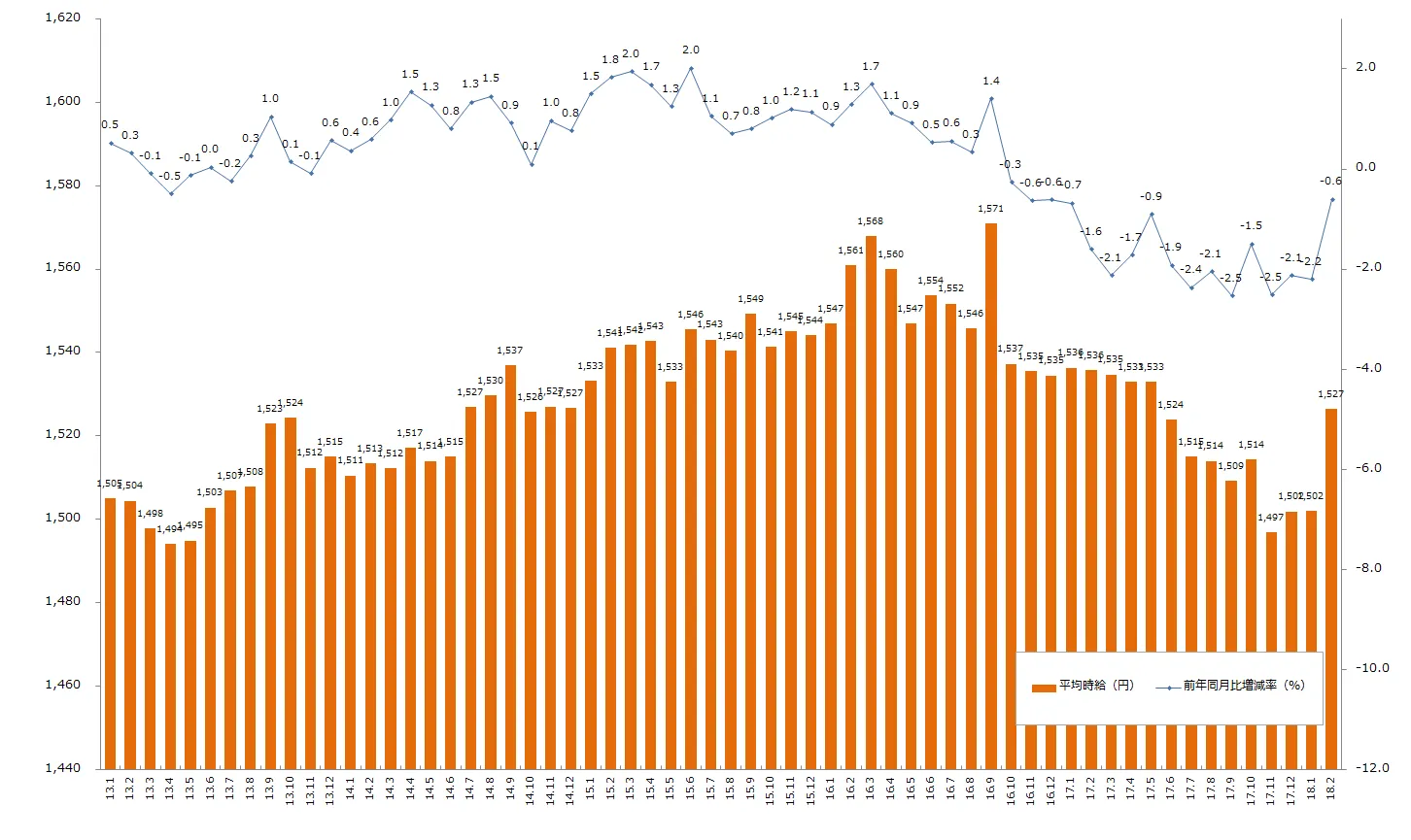 2018年2月度の派遣平均時給は1,527円 営業系・クリエイティブ系・IT系・技術系が過去最高を記録