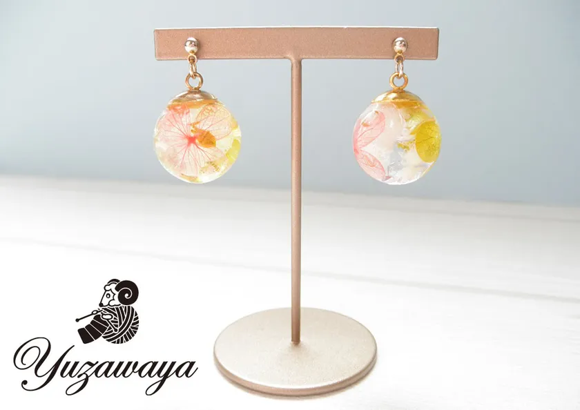 レジンとは透明な樹脂の中にキラキラしたビーズやラメ、パーツなど、好きなものを詰め込んで固め作ることができる手作りグッズで人気の素材。この「レジン」や「ハーバリウム」のピアスやイヤリングを作成体験して頂きます。