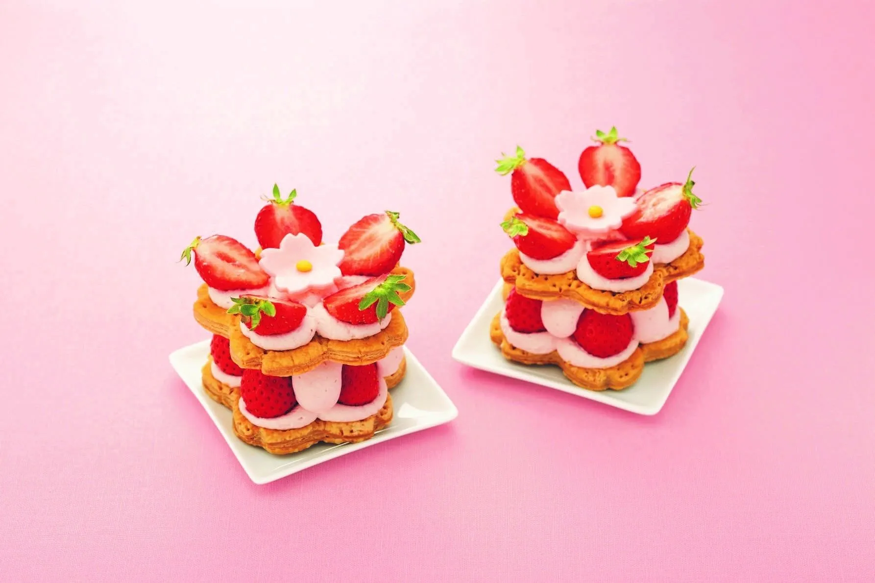 桜型のパイに苺のクリームと旬の苺「あまおう」を重ねました。キュートでボリューム感もある今だけのミルフィーユです。