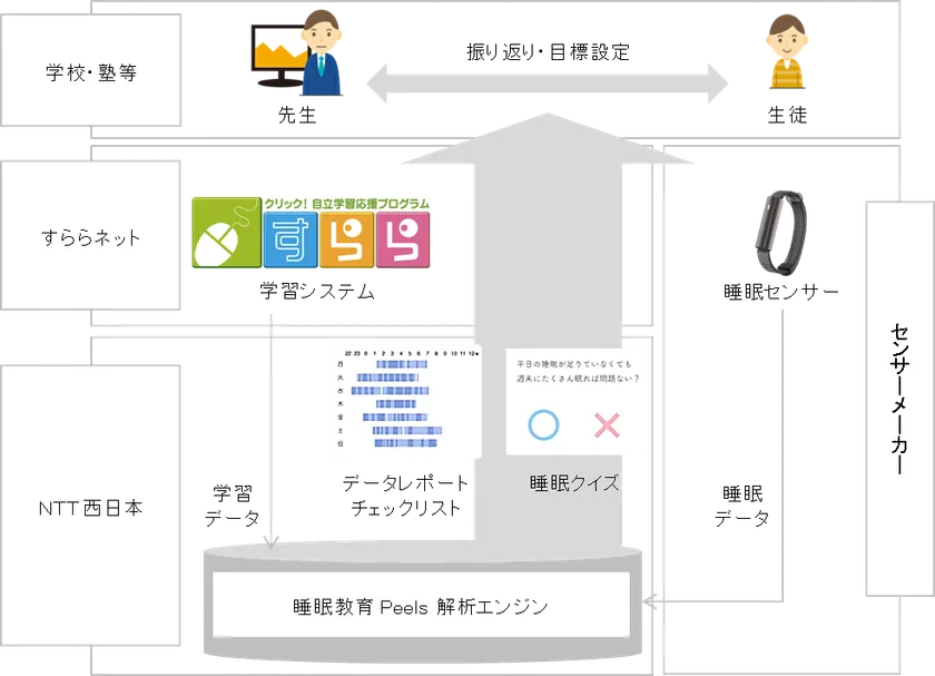 NTT西日本とすららネットは、学習時における集中力の向上や意欲に溢れたライフスタイルをサポートする睡眠教育プログラムに関する共同トライアルを2017年7月から共同で実施※1し、睡眠教育ツールとしての実現性やユーザエクスペリエンス、利用者からの導入要望について、一定の評価が得られたことから、この度、商用提供にいたりました。