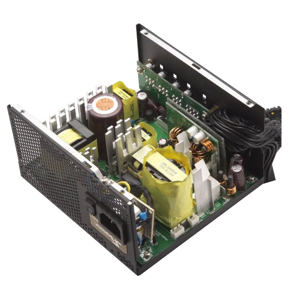 Seasonic電源には、高品質の日本メーカー製105℃電解コンデンサを一次側と二次側の両方に搭載しており、85℃品に比べて約4倍の期待寿命を有します。固体コンデンサは、急激な負荷変動に対して、エネルギーをすぐに放出できるため、電圧が変動しにくい特長があります。品質の高い電解・固体コンデンサを採用することにより、製品寿命と信頼性を向上させました。