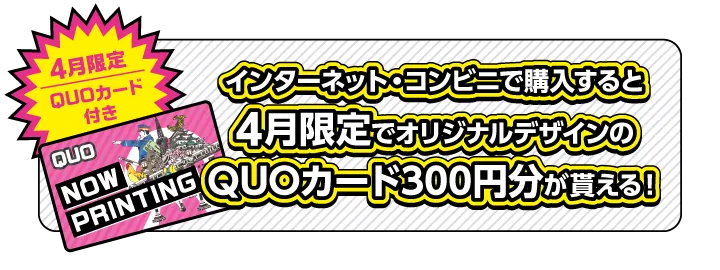 4月限定でオリジナルデザインのQUOカード300円分をプレゼントいたします。4月1日(日)より発売!>