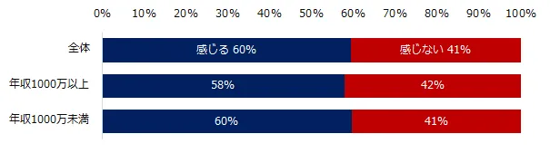 年収別で特に差が開いた項目は、「年齢について」(年収1000万円以上:45%、1000万円未満:57%)、「これまでの経験・スキルが通用するのか」(同:39%、52%)、「自分の市場価値(アピールできることがない)」(同:24%、35%)です。