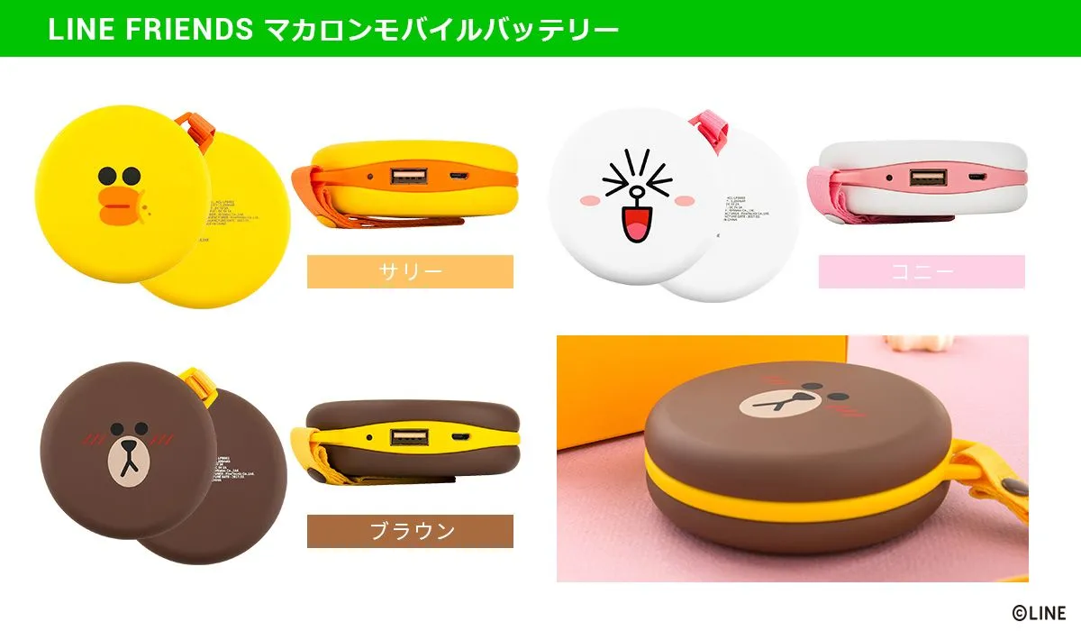 ■「サリー」「コニー」「ブラウン」がマカロンみたいなかわいいモバイルバッテリーに