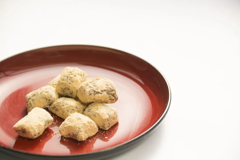 口に入れるとスッと溶けはじめる柔らかな食感と、挽き立てのきな粉の香ばしい薫りが特徴の商品です。