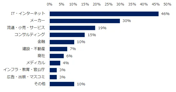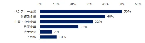 転職支援のプロフェッショナルである転職コンサルタントに「CxO求人(最高責任者の採用)」について伺いました。「CxO求人(最高責任者の採用)は増加していますか」という質問では、31%の方が「増えている」と回答。「減っている」(6%)を大きく上回りました。CxO職の採用が多い企業タイプは「ベンチャー企業」(50%)「外資系企業」(40%)、業種は「IT・インターネット」(46%)「メーカー」(30%)がそれぞれ第1位、第2位となりました。