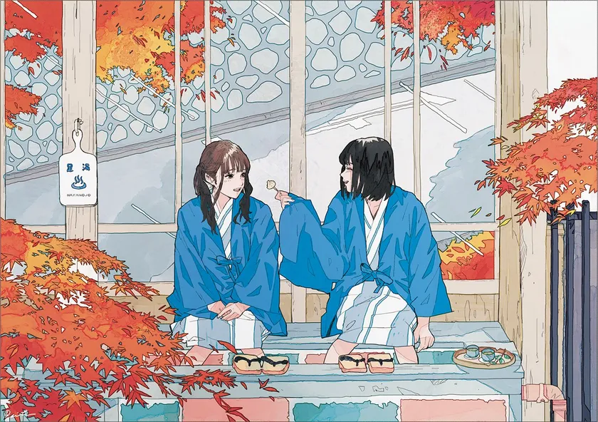 今回のイラストは、本ツアーのイメージモデルを務める、ほげちゃん、ボブリシャスを書き下ろしたオリジナルの作品。女の子が旅行を楽しむ最中のふとした一コマを、独特なタッチと色彩で切り取っています。