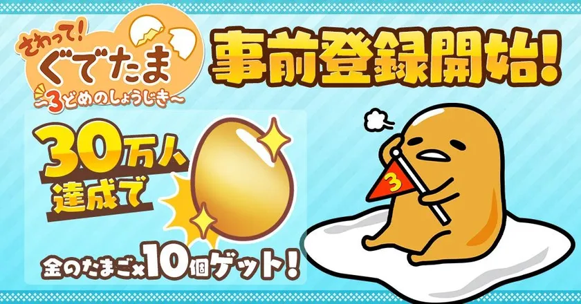2018年3月26日(月)18:00に『さわって!ぐでたま ~3どめのしょうじき~』の事前登録を開始しました。事前登録は、日本/アメリカ/中国/台湾/香港/韓国の6か国地域を中心に全世界に向けて実施いたします。(一部地域を除く)