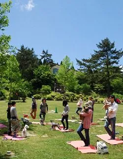 当園の「ドッグラン」は、傾斜地を利用したワンちゃんの足にも優しい天然芝生エリアで、リードをはずしてのびのびと遊ぶことができ、街中での散歩では味わえない開放感が魅力です。昨年の前期開催時には約1,200頭の利用があり、たくさんのワンちゃん連れのお客様にお楽しみいただきました。また、当園では愛犬家の皆様に、より充実した時間を過ごしていただくため、昨年、好評いただいた「ドッグヨガ」を今期も開催します。なお、「ドッグラン(後期)」は9月~11月にも開催を予定しています。