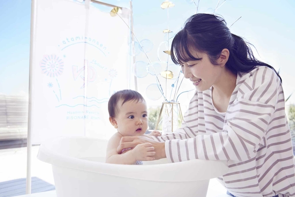 【リゾナーレ熱海】熱海の海や街並みを一望できる貸切りの大浴場で子どもの温泉デビューができる宿泊プラン「はじめてのおんせん」販売 ~ベビーソープや湯温計、ベビーチェアなど役に立つアイテムが揃ったサポートセットが新登場~|期間:2022年12月5日~通年(月・水・金曜日限定)