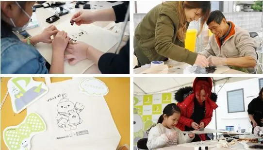 バンタンのブースでは、「ソラシドエア×バンタン産学協同プロジェクト」を通して学生が考案したソラシドエア公認キャラクター「ソラシドリ♪」のエコバッグを製作するステンシルワークショップと、「ソラシドリ♪」や客室乗務員と一緒に写真が撮れるフォトブースを展開。その他、「ソラシドリ♪」のお披露目会として学生がステージに登壇し、プロジェクトの発表を行ないました。