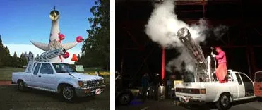 1990年初頭より、現代社会における「サヴァイヴァル」をテーマに実機能のある機械彫刻を制作。創作の原点は、幼少期に遊び場で過ごした大阪万博跡地「未来の廃墟」。ユーモラスな形態に社会的メッセージを込めた作品群は国内外で評価が高い。1997年より、放射線感知服《アトムスーツ》を装着してチェルノブイリなどを訪れる《アトムスーツ・プロジェクト》を敢行。21世紀の幕開けとともに、制作テーマを「リヴァイヴァル」へと移行。腹話術人形「トらやん」をキャラクターとするシリーズを開始。2005年、巨大ロボット《ジャイアント・トらやん》、2009年、「第五福竜丸」をモチーフとした船舶《ラッキードラゴン》を制作。火や水を用いた壮大なパフォーマンスを展開する。2011年、東日本大震災後、希望のモニュメント《サン・チャイルド》を制作。福島を含め世界各地で巡回展示され、3体のうち1体が茨木市に恒久設置される。2013年、小豆島にビートたけしとの共作《アンガー・フロム・ザ・ボトム》、2015年、兵庫県立美術館前に《サン・シスター》、2017年、WeBase博多に《SHIP'S CAT》など、各地で巨大彫刻が恒久設置される。地域と共鳴する巨大彫刻を置くことで人々に希望を与える活動を続けている。現在、京都造形芸術大学教授兼ウルトラファクトリー・ディレクター。