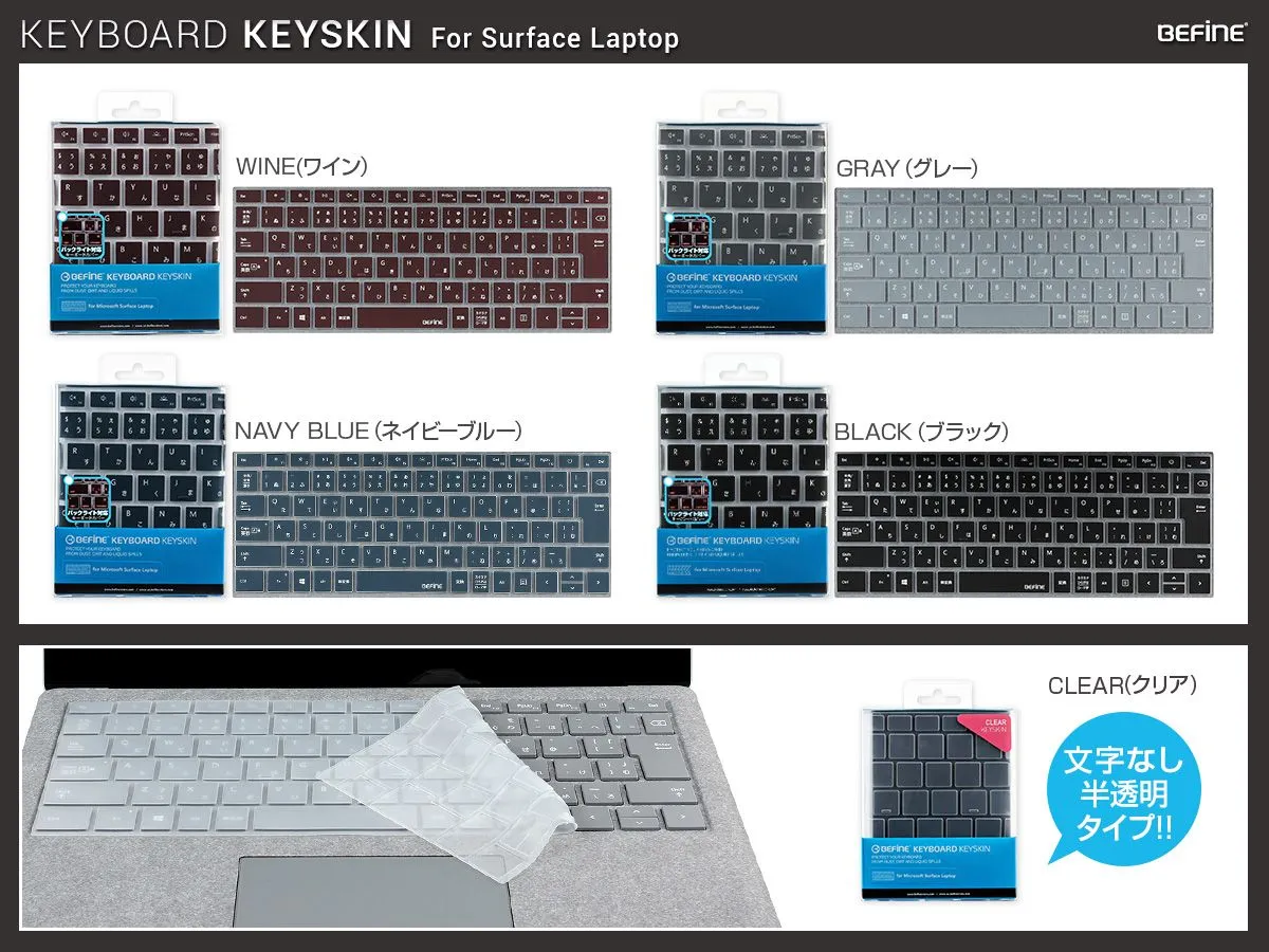 BEFiNE、Surface Laptop専用キーボードカバー「キースキン」新発売