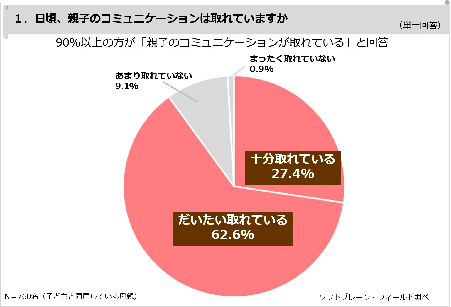 ・90%以上の方が、「日頃、親子のコミュニケーションが取れている」と回答。