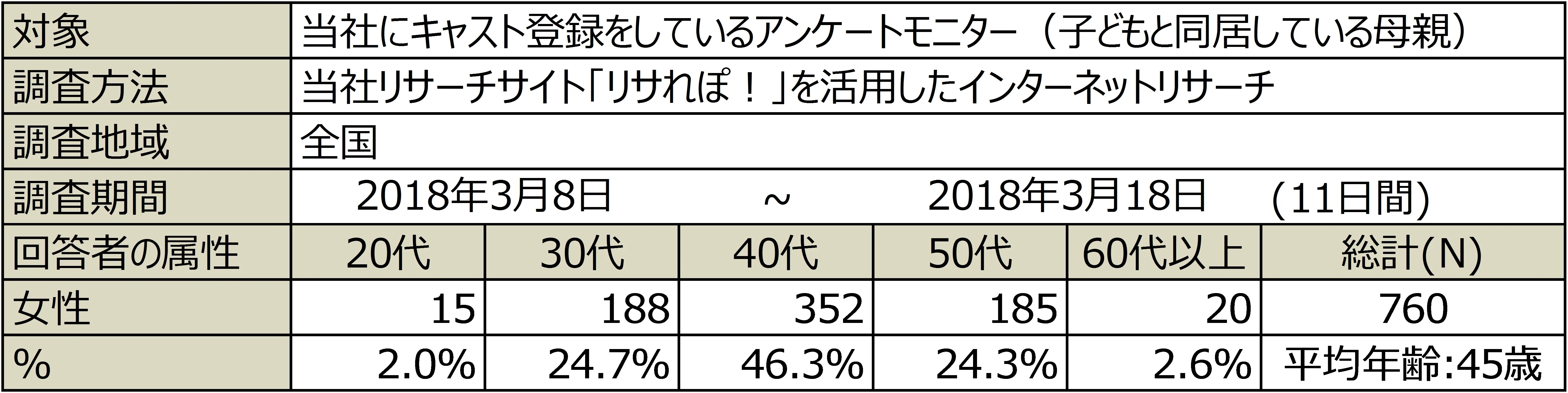 もうすぐ4月。新学期や新生活など、親子ともに期待に胸をふくらませる一方で、新しい環境に不安を感じている方も中にはいらっしゃるのではないでしょうか。フィールド・クラウドソーシング事業を展開するソフトブレーン・フィールド株式会社(本社東京都港区、代表取締役社長:木名瀬博)は、「親子のコミュニケーションについての調査」を2018年3月8日~3月18日に実施しました。アンケートの対象は、30代から40代を中心とする当社のキャスト会員で、(平均年齢45歳)、子どもと同居している母親、有効回答数は760名でした。(調査概要は、下部に記載)