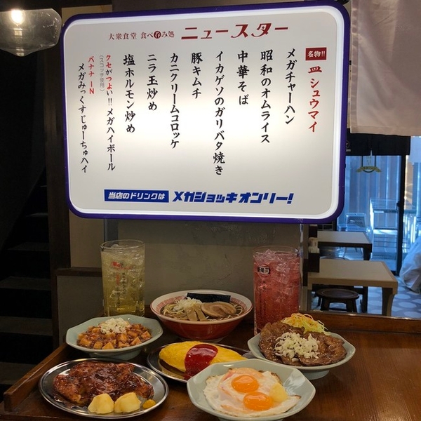 地域で一番輝く店になると言う想いを込め、「ニュースター 新星」と名付け完成した業態。 昼間から気さくに飲める昭和感あふれる大衆街中華食堂を表現しました。名物の皿しゅうまい、中華そば、オムライス等新しくも懐かしい。又、しっかり食事から軽くおつまみまで幅広いメニューで幅広い層のお客様に楽しんで頂けるお店です。
