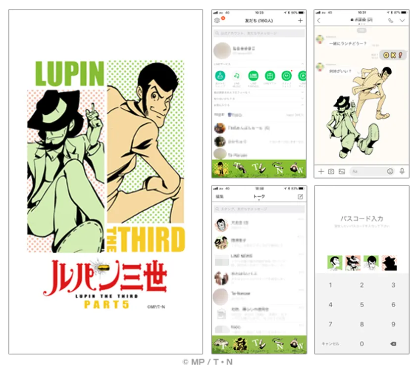 LINE着せかえ第3弾となる今作は、2018年4月3日(火)日本テレビほかにて放送開始のアニメ『ルパン三世 PART5』のキャラクター画像を使用し、「ルパン三世と次元大介」、そして「峰不二子」にフィーチャーしたデザインで展開します。