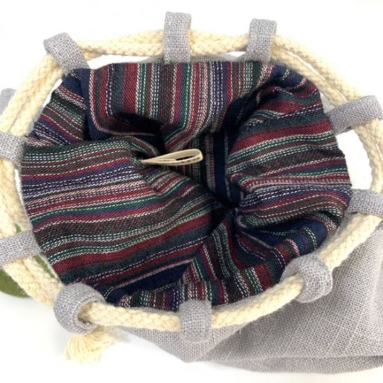 目の粗い素材感は、トトロの雰囲気にぴったり!こちらもどんぐり、おにぎりが入るサイズ感です。