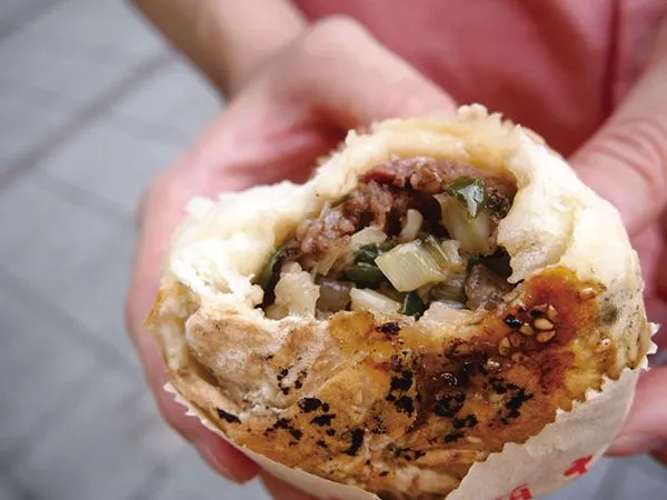 胡椒をきかせた豚肉の餡(あん)と葱(ねぎ)を生地に包み釜で焼いた、台湾で定番の食べ歩きグルメ「胡椒餅(フージャオビン)」。夜市を歩けば、この胡椒餅を売っている屋台に必ずと言っていいほど出くわします。屋台ごとにさまざまなバリエーションあり、餡に使われているのがブロック肉だったり、細かい挽肉だったり、味付けが甘めだったり、スパイシーだったり…食べ比べをするのも楽しいです。