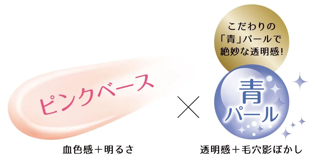 ピンクベース(肌色補正)×青パール(毛穴影ぼかし)