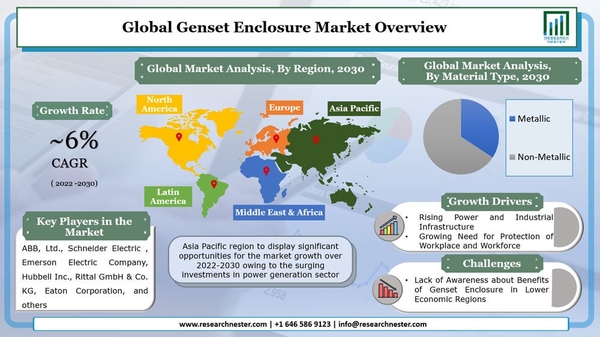 Research Nester Private Limitedは調査レポート「発電機エンクロージャー市場:世界的な需要の分析及び機会展望2030年」2022年01月 10日に発刊しました。これは、予測期間中に、市場の詳細な分析とともに、業界の詳細な洞察を提供します。レポートは、市場規模と決定に基づいてさまざまなパラメーターについて説明します。これらには、市場価値、年間成長、セグメント、成長ドライバーと課題、および市場における主要企業などが含まれます。