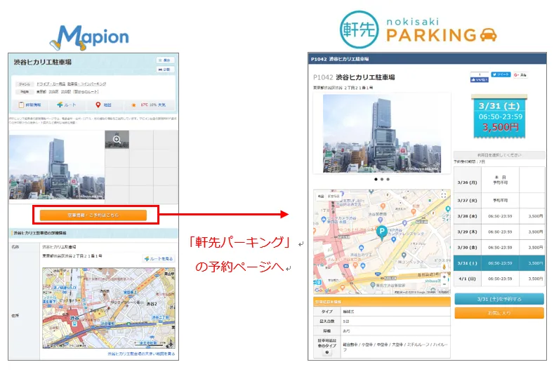 駐車場シェアリングサービス「軒先パーキング(https://parking.nokisaki.com/)」(運営:軒先株式会社、代表取締役:西浦明子、東京都千代田区)は、日本最大級のインターネット地図情報サービス「Mapion(https://www.mapion.co.jp/)」(運営:株式会社マピオン、代表取締役社長 中尾光宏、東京都港区)においてサービス連携をいたします。