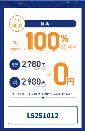 定期チケット<30日プラン> 税込¥3,278→¥0