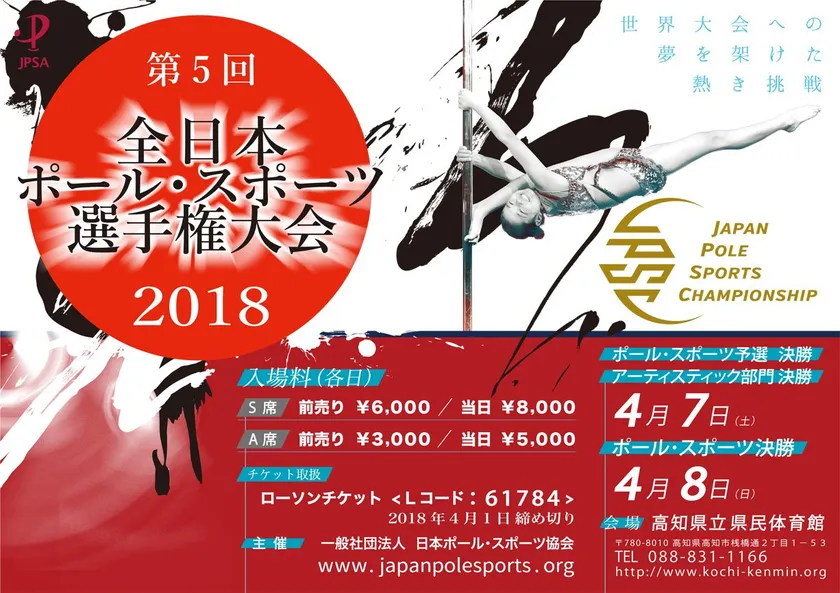 日本におけるスポーツとしてのポールダンスの振興・発展を促進する一般社団法人日本ポール・スポーツ協会(所在地:大阪市中央区南船場、代表理事:岡本 雅世)は、世界大会への出場権を賭けた「第5回全日本ポール・スポーツ選手権大会2018/Japan Pole Sports Open Competition」を2018年4月7日(土)/4月8日(日)に高知で開催いたします。