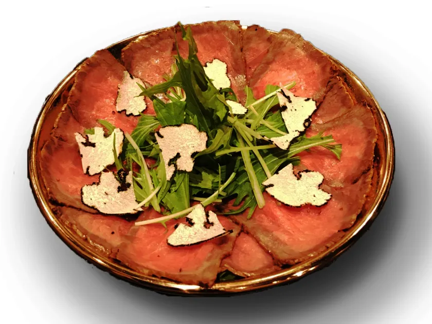 ローストビーフ盛は、トリュフ塩・わさびのシンプルな2種類の調味料で、和牛の旨味をしっかりとお楽しみいただけます。