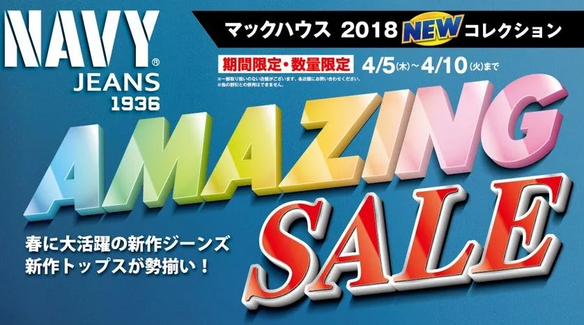 この度、株式会社マックハウス(本社:東京都杉並区/代表取締役社長:白土孝)は、「AMAZING SALE」と題し、春に大活躍の新作ジーンズやトップスの期間限定セールを開催いたします。