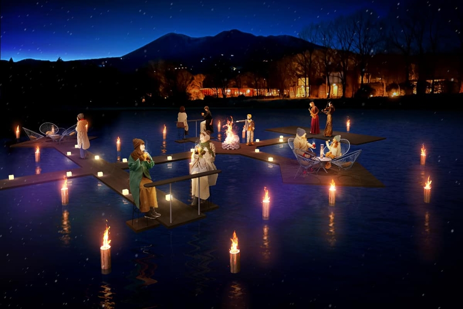 【リゾナーレ那須】焚火に囲まれた水上の特別席が登場。焚火を囲んで楽しむ温かい甘酒やホットドリンク、音楽家による演奏会なども堪能できる「SUIDEN焚火ラウンジ」オープン|期間:2023年1月7日~3月15日