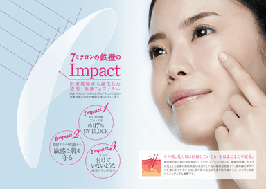 薄さ7ミクロン(卵の薄皮の10分の1の薄さ)の透明フィルムで、どんな肌にもぴったりフィット。普段のメイクにもよく馴染み、周りにも気づかれにくい。