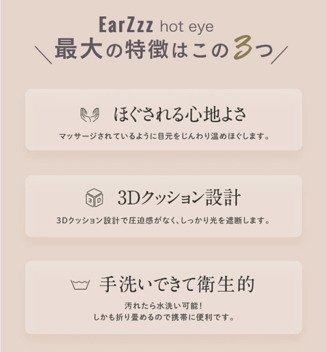【心地よいぬくもりで、優しくアイケア「EarZzz hot eye 」】はここが違う!